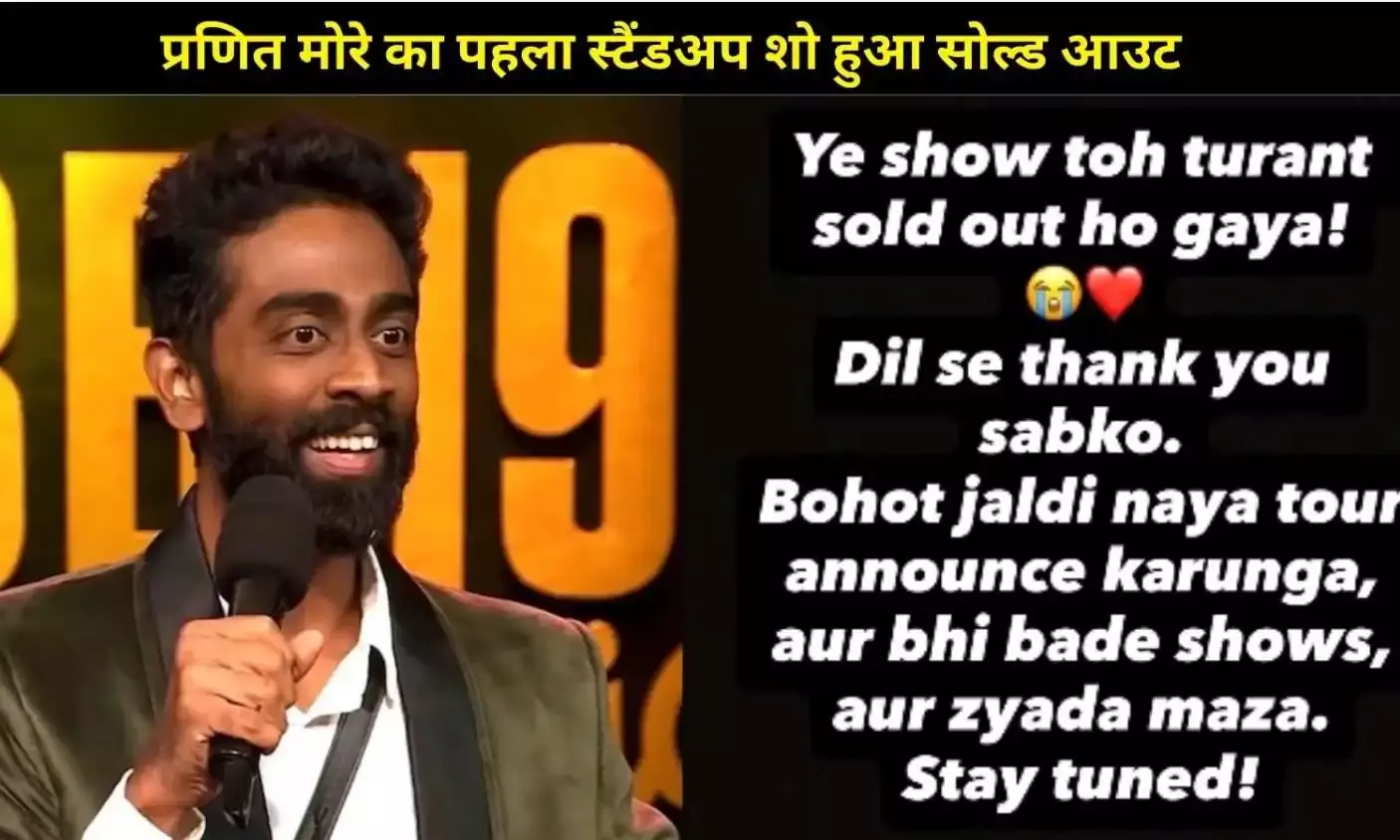 शो के सोल्ड आउट होने की खुशी खुद प्रणित मोरे ने भी सोशल मीडिया पर जाहिर की. उन्होंने अपनी इंस्टाग्राम स्टोरी पर शो के सोल्ड आउट होने का स्क्रीनशॉट शेयर किया. रोने वाले इमोजी के साथ उन्होंने लिखा, ये शो तो तुरंत सोल्ड आउट हो गया. दिल से सबको थैंक यू. बहुत जल्दी नया टूर अनाउंस करूंगा… और भी बड़े शोज, और भी ज्यादा मजे. उनकी ये पोस्ट देखते ही देखते वायरल हो गई और फैंस ने कमेंट्स में उन्हें जमकर बधाइयां दीं.