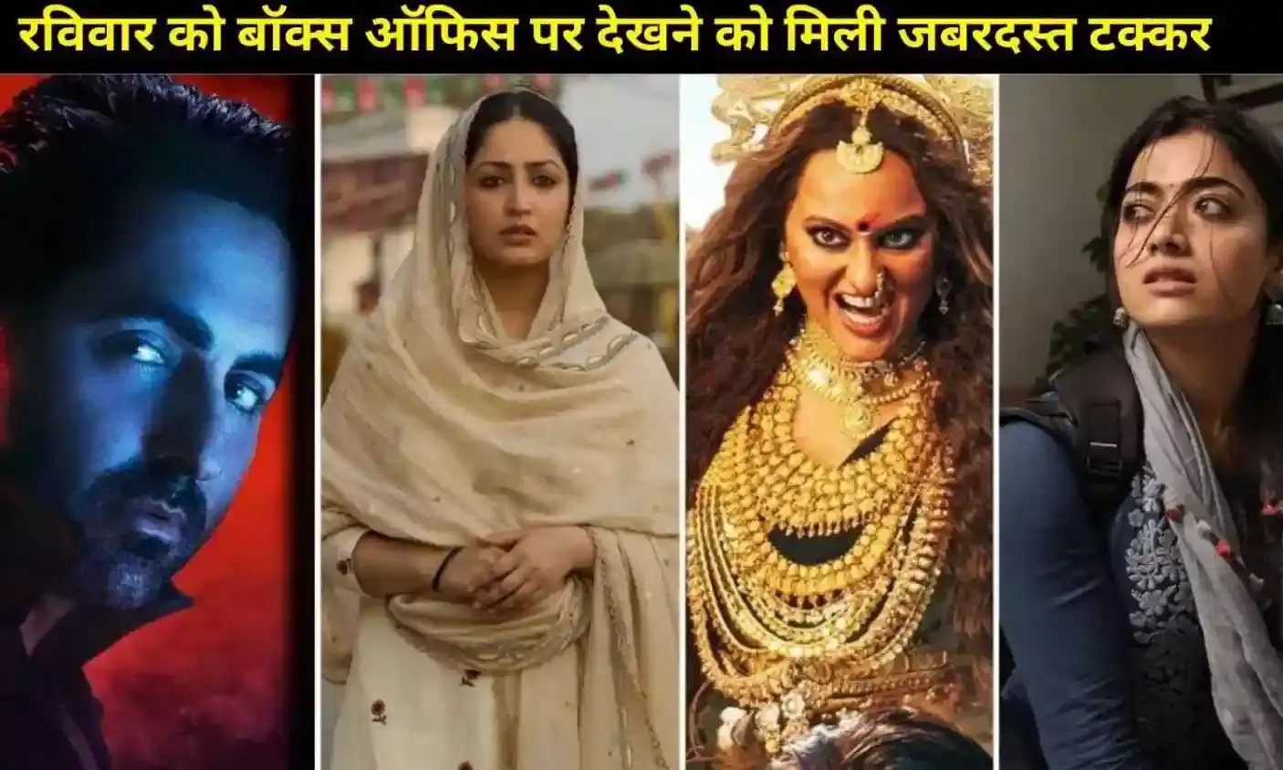 संडे का दिन बॉलीवुड फिल्मों के लिए हमेशा खास होता है. छुट्टी के दिन दर्शक थिएटर की ओर रुख करते हैं और फिल्मों की कमाई में बढ़ोतरी देखने को मिलती है. बीते रविवार को भी ऐसा ही नजारा देखने को मिला, जब चार फिल्मों के बीच जबरदस्त क्लैश हुआ. ‘हक’, ‘द गर्लफ्रेंड’, ‘जटाधरा’ और पुरानी हिट ‘थामा’. तो आइए जानते हैं कि इन चारों फिल्मों में किसने रविवार को बॉक्स ऑफिस पर ताज जीता.