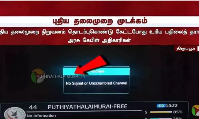 तमिलनाडु में प्रमुख तमिल चैनल ''पुथिया थलैमुरै' सरकारी टीवी नेटवर्क से ब्लैकआउट