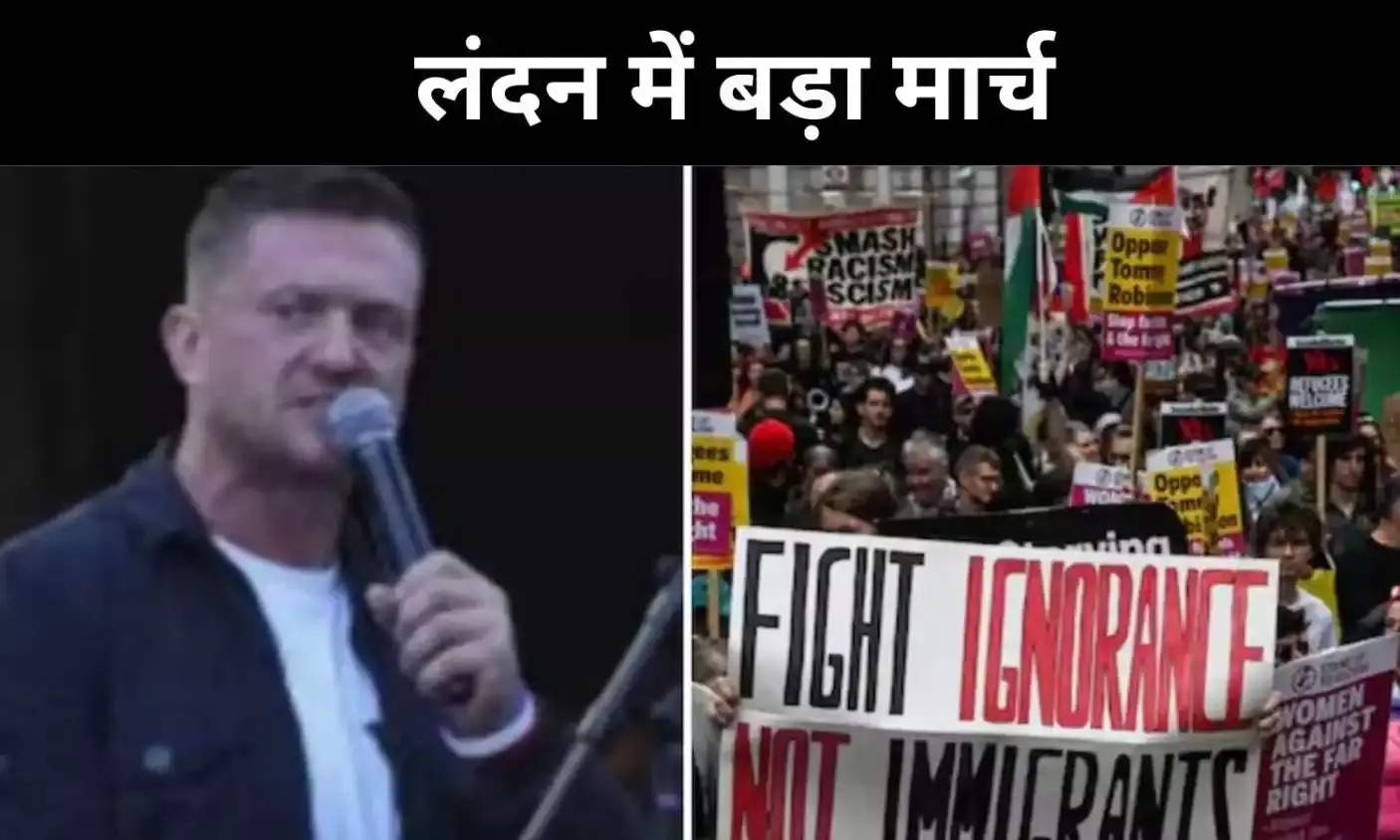 लंदन में एंटी-इमिग्रेशन मार्च में 1 लाख से अधिक लोग शामिल हुए। टॉमी रॉबिन्सन के नेतृत्व में निकली रैली में झंडे, नारे और पुलिस से झड़पें देखी गईं।