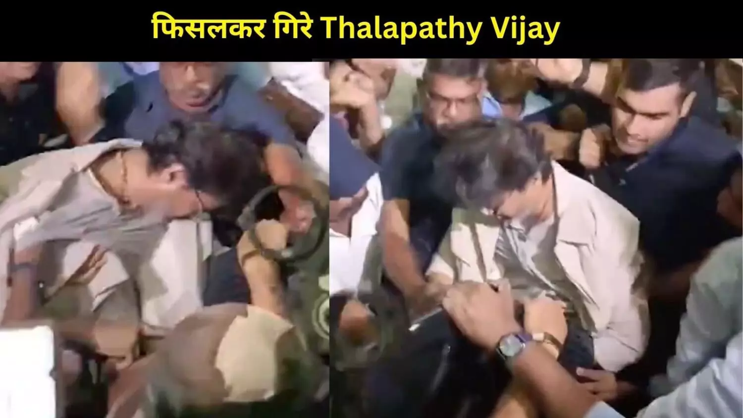 एयरपोर्ट पर बेकाबू भीड़, फिसलकर गिरे Thalapathy Vijay! हजारों फैंस के बीच हुआ हादसा, देखें Video
