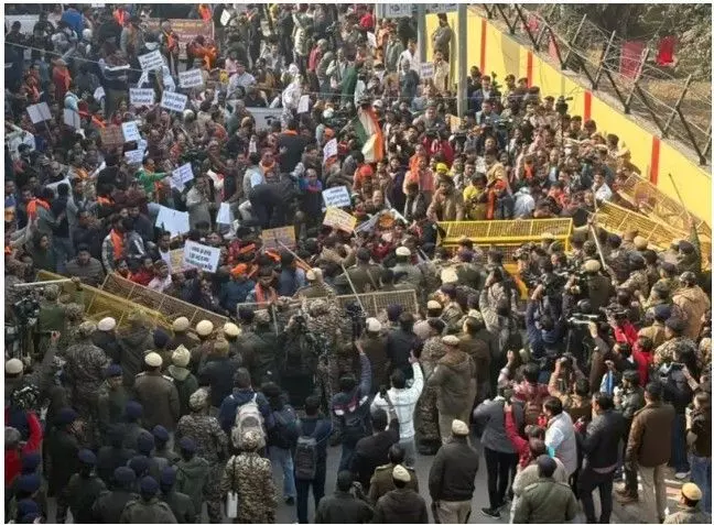 बांग्लादेश में हिंदू युवक की हत्या पर दिल्ली में बांग्लादेश मिशन के बाहर प्रदर्शन, भारी बवाल