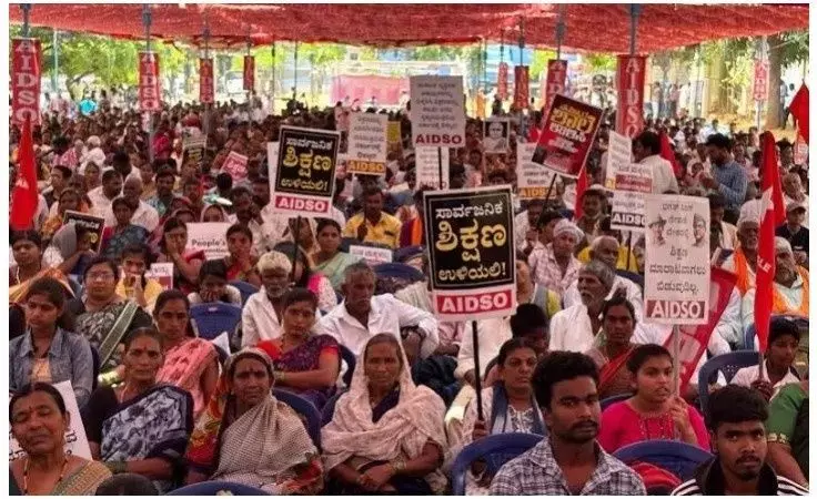 इस प्रदर्शन में महिला संगठनों, छात्र संगठनों, लेखकों, सामाजिक कार्यकर्ताओं के साथ-साथ मजदूरों और किसानों के प्रतिनिधियों ने भी हिस्सा लिया, जो अपने बच्चों की शिक्षा के लिए सरकारी स्कूलों पर निर्भर हैं।